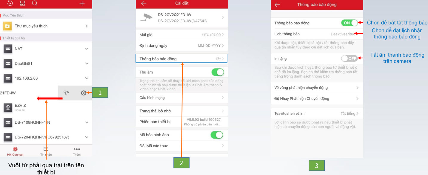 Thiết lập, tắt mở tính năng báo động chuyển động của camera