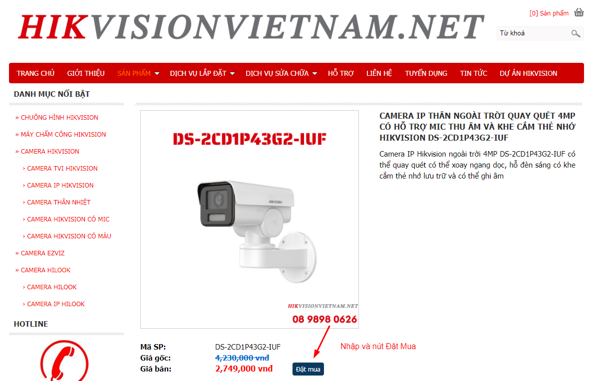 Hướng dẫn đặt hàng online các sản phẩm, dịch vụ của công ty một cách chi tiết giúp khách hàng dễ dàng thao tác chọn cho mình bộ camera phù hợp với mình nhất.