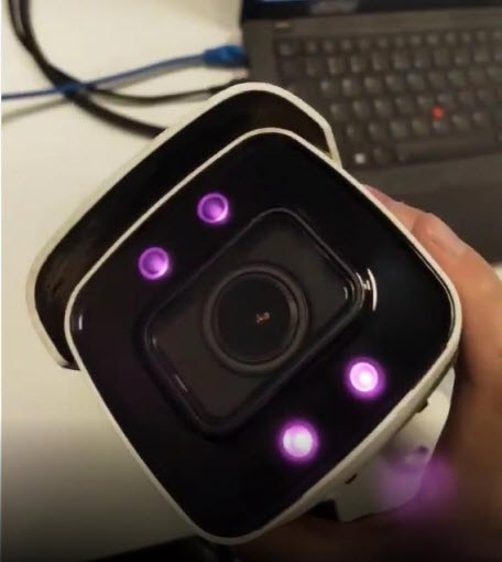 Quan sát xem đèn hồng ngoại của camera có thể sáng bình thường khi được cấp nguồn bằng POE và nguồn điện 12V bên ngoài hay không? Hình ảnh bên dưới hiển thị đèn hồng ngoại bật bình thường khi có nguồn cấp cho camera.