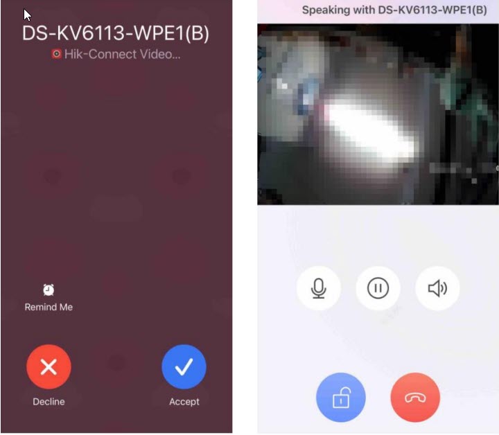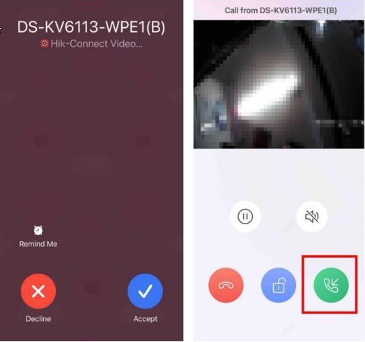 Hướng dẫn kiểm tra xem trực tiếp trước khi chấp nhận cuộc gọi trên Hik-Connect (iOS), giúp bạn kiểm soát an ninh dễ dàng với thiết bị chuông hình