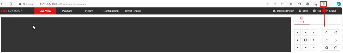 Truy cập địa chỉ IP của thiết bị trên Microsoft Edge --> click chọn biểu tượng