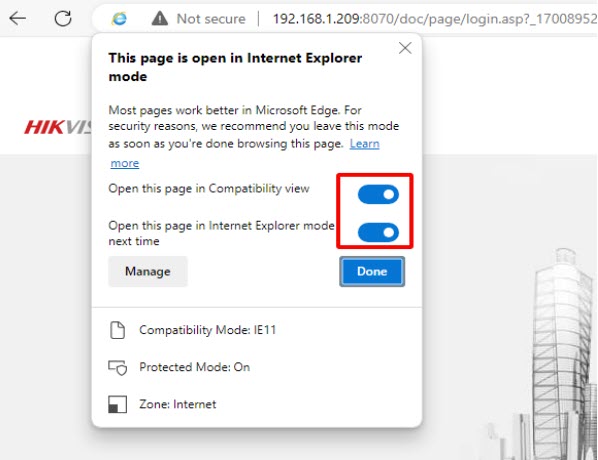 Tài liệu này sẽ hướng dẫn cách để chạy chế độ IE mode trên trình duyệt Microsoft EDGE, từ đó bạn có thể thực hiện các chức năng trên giao diện Web của thiết bị: cấu hình, xem trực tiếp, xem phát lại,…