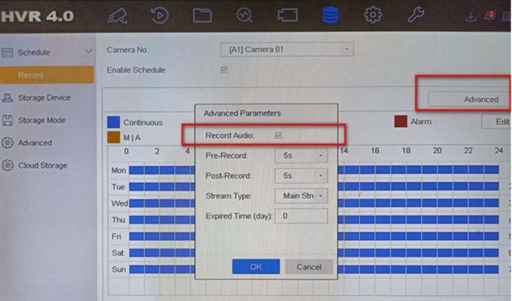 Bật âm thanh trong mục cài đặt lịch ghi hình
