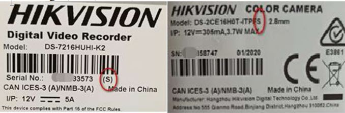 Hình ảnh nhãn của DVR và camera analog có (S) như dưới đây cho thấy chức năng âm thanh đồng trục được hỗ trợ