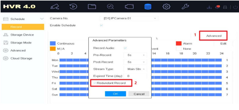 Hướng dẫn thực hiện chức năng ghi hình dự phòng trên thiết bị đầu cuối NVR/DVR Hikvision, cung cấp các bước thiết lập để bảo đảm dữ liệu được ghi lại liên tục ngay cả khi gặp sự cố