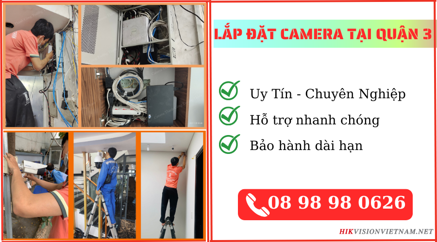 Lắp đặt camera Hikvision tại quận 3 nhanh chóng, thẩm mỹ. Sản phẩm chính hãng, bảo hành bảo trì tốt nhất, giá cả cạnh tranh, tư vấn đến khách hàng là những sản phẩm chất lượng.