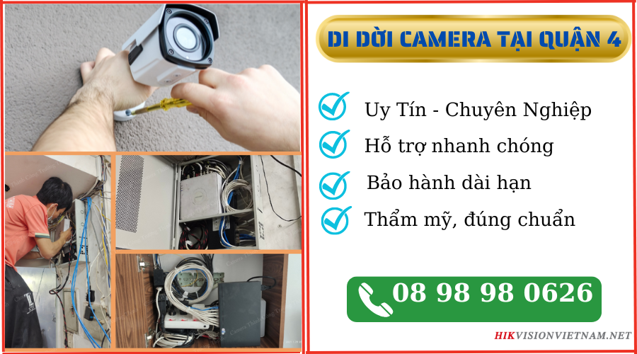 hikvisionvietnam.net nhận di dời camera Hikvision tại quận 4 nhanh chóng, thẩm mỹ, giá cả cạnh tranh, làm việc uy tín, chất lượng.