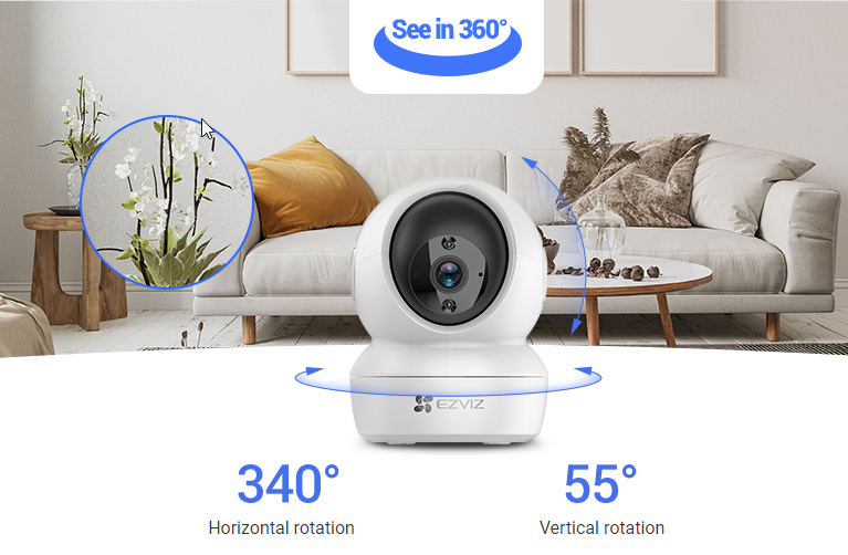 Camera wifi không dây Ezviz H6C 4MP 2K là dòng camera được thiết kế để đảm bảo an ninh và bảo vệ ngôi nhà của bạn 24/7 được an toàn. Bên cạnh đó, camera H6C 4MP quay hình toàn cảnh 360 độ không điểm mù cùng với độ phân giải 4MP 2K giúp quan sát được rõ ràng và sắc nét.