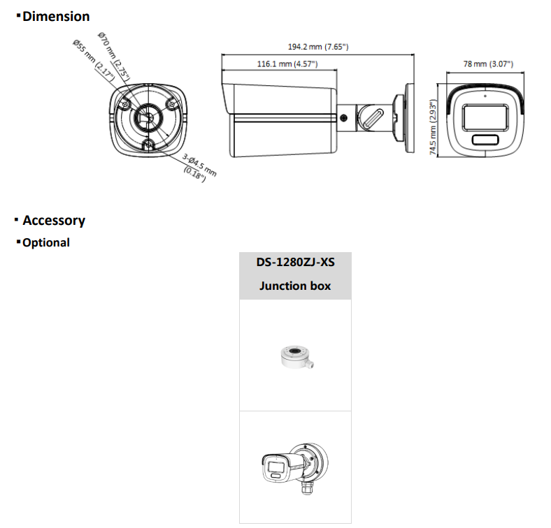 | Min. Illumination | 0.001 Lux @ (F1.0, AGC ON), 0 Lux with white light |