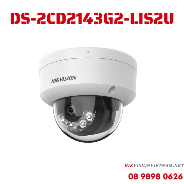 Camera Hikvision DS-2CD2143G2-LIS2U 4MP, nén H265+, tích hợp mic, thiết kế bán cầu, cung cấp hình ảnh sắc nét và âm thanh rõ ràng, tiết kiệm băng thông và lưu trữ.
