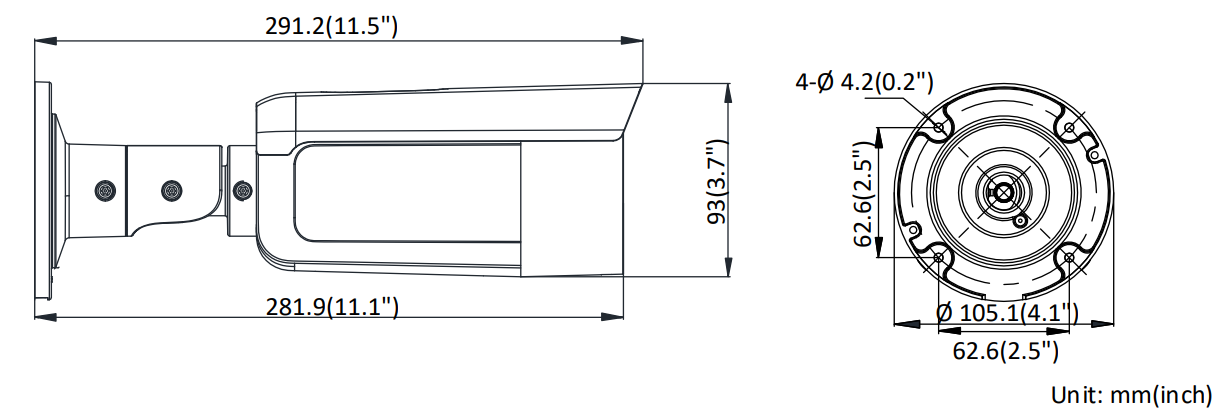 | Dimension | Camera: Φ 105 × 290.7 mm (Φ 4.1' × 11.4');With package: 385 × 190 × 180 mm (15.2' × 7.5' × 7.1') |