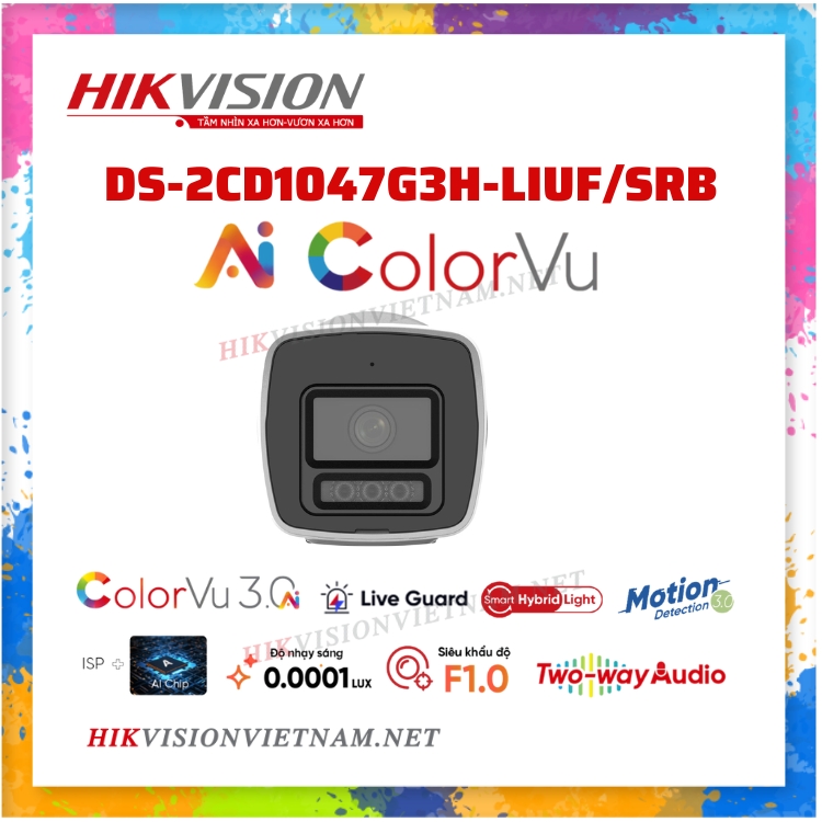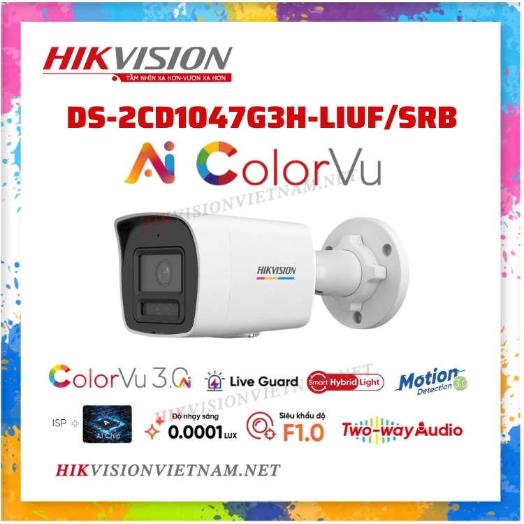 Camera Hikvision DS-2CD1047G3H-LIU(F)(/SL)(/SRB) là dòng camera IP cao cấp thuộc series ColorVu thế hệ thứ 3 của Hikvision. Thiết bị nổi bật với khả năng ghi hình màu sắc rực rỡ 24/7, độ phân giải 4MP, tích hợp mic và loa hai chiều, hỗ trợ đèn cảnh báo, báo động chủ động, và nhiều công nghệ xử lý hình ảnh tiên tiến, mang lại giải pháp an ninh chủ động và hiệu quả cho gia đình, văn phòng, cửa hàng, kho xưởng.