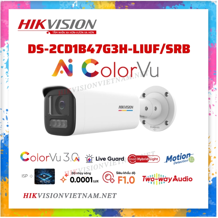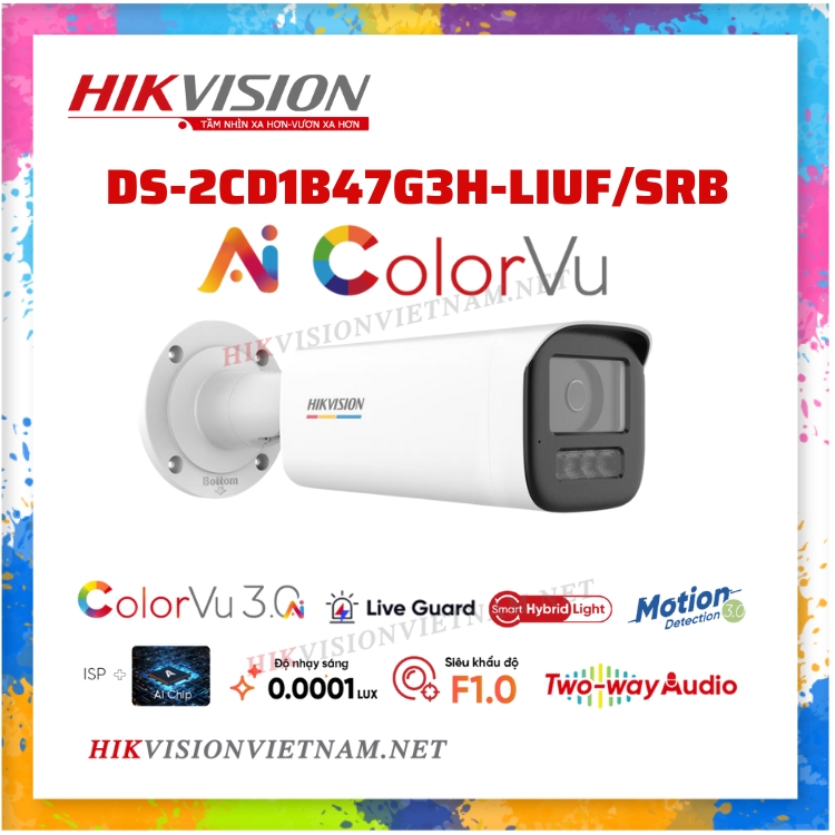 Camera IP ColorVu 4MP Hikvision DS-2CD1047G3H-LIU(F)(/SL)(/SRB)