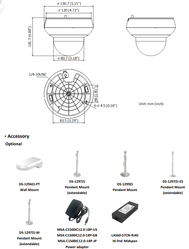 | White Balance | Auto/Manual/ATW (Auto-tracking White Balance)/Indoor/Outdoor/Fluorescent Lamp/Sodium Lamp |
