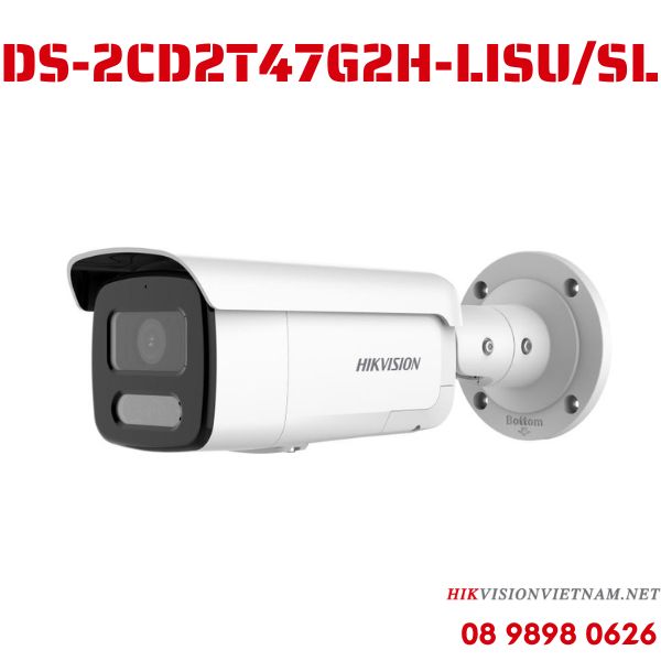 Camera Hikvision DS-2CD2T47G2H-LISU/SL 4MP cung cấp hình ảnh màu 24/24, tích hợp micro, cảnh báo âm thanh và đèn, lý tưởng cho giám sát an ninh hiệu quả.