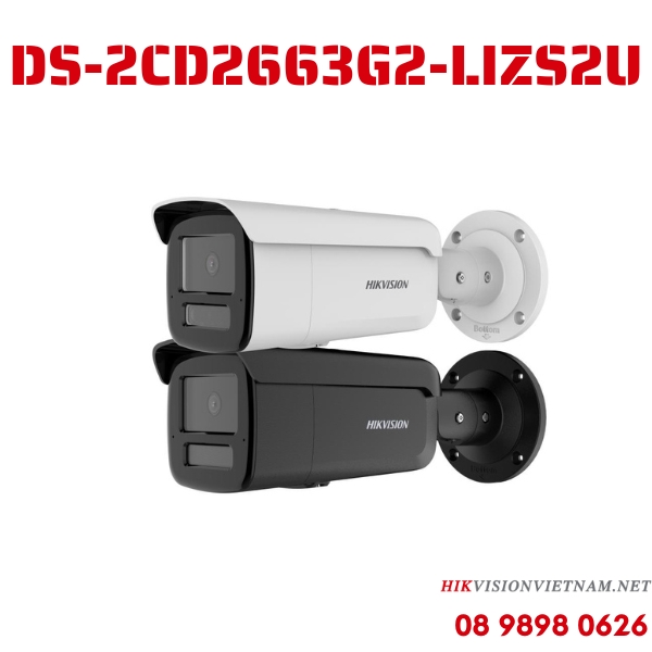 Camera Hikvision DS-2CD2663G2-LIZS2U 6MP, nén H.265+, ống kính 2.8-12mm, hồng ngoại ban đêm, tích hợp AI thông minh, thiết kế bền bỉ, lý tưởng cho giám sát ngoài trời chi tiết và hiệu quả.
