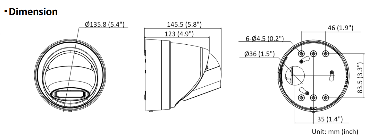 | Min. Illumination | Color: 0.002 Lux @ (F1.4, AGC ON), B/W: 0 Lux with IR |