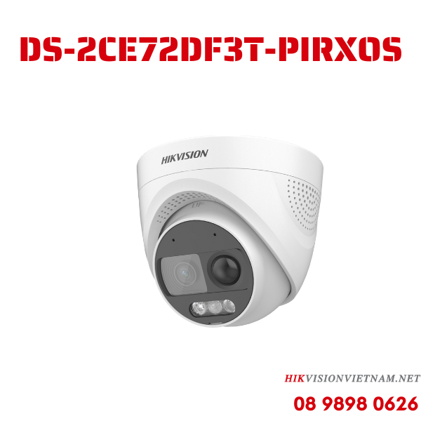Camera ColorVu 2MP tích hợp còi đèn báo động & đàm thoại 2 chiều Hikvison DS-2CE72DF3T-PIRXOS