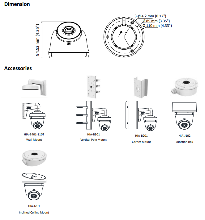 | Functions | Brightness, Sharpness, 3D DNR, Mirror, Smart IR |