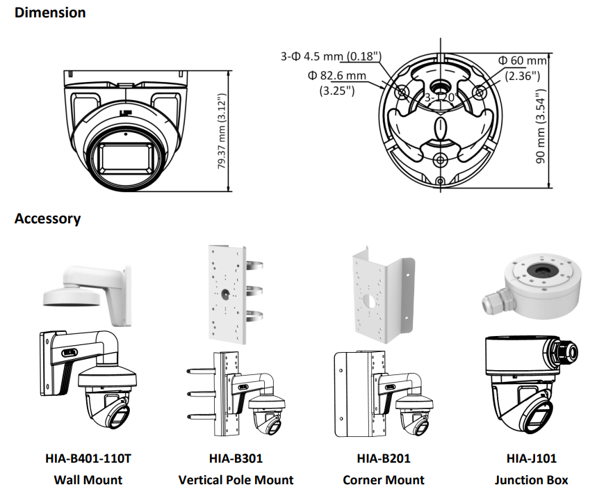 | Angle Adjustment | Pan: 0 to 360°, Tilt: 0 to 75°, Rotation: 0 to 360° |