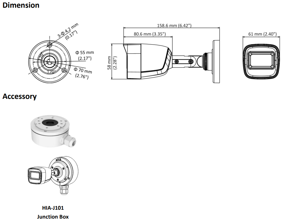 | Lens | 2.8 mm, 3.6 mm, 6 mm fixed lens |