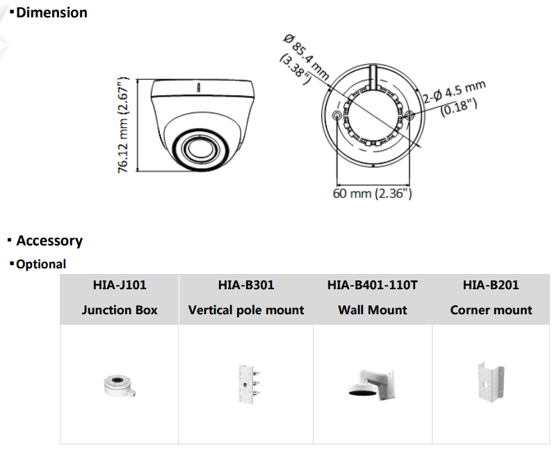 | Image Settings | Brightness, Sharpness, Mirror, Smart IR, AGC |