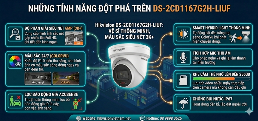 Camera Ốp Trần 4MP Hikvision DS-2CD1147G2H-LIUF: Có Màu 24/7, Phát Hiện Con Người