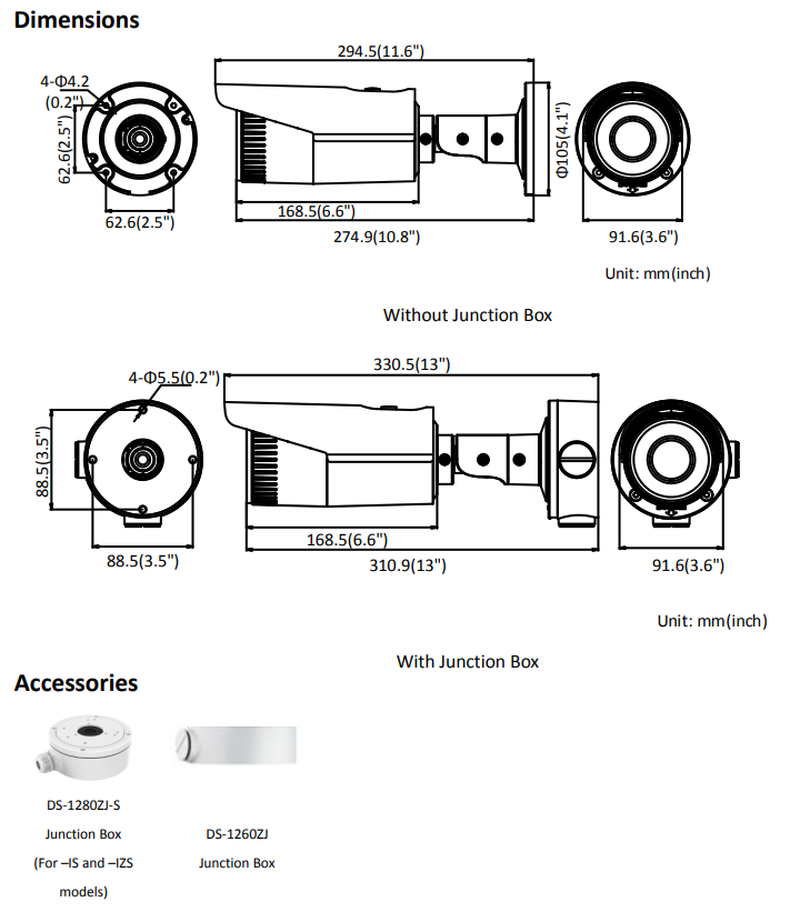 Φ 105 × 294.5 mm (Φ 4.1" × 11.6") |