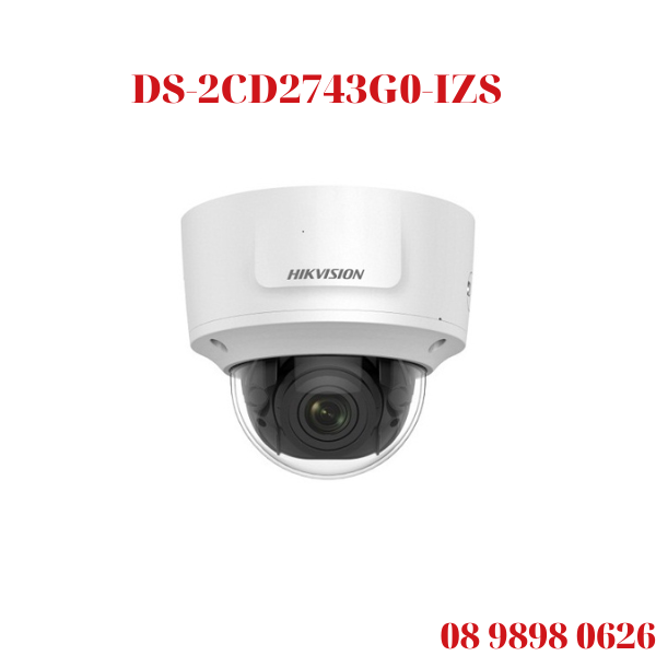 Camera IP Hồng Ngoại 4MP Hikvision DS-2CD2743G0-IZS sở hữu thiết kế hình bán cầu nhỏ gọn, trang nhã kết hợp chân đế vững chắc giúp bạn dễ dàng lắp đặt mọi vị trí trong không gian nội thất gia đình, cơ quan, cửa hàng