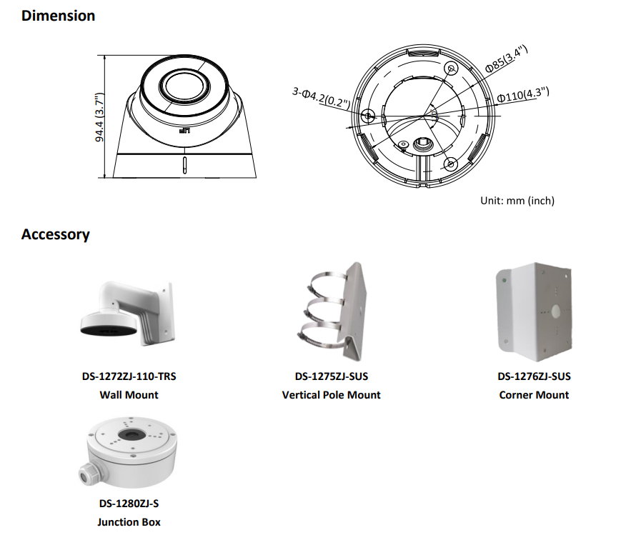 | Camera Dimension | Ø110 mm × 85.3 mm (Ø4.3″ × 3.4″) |