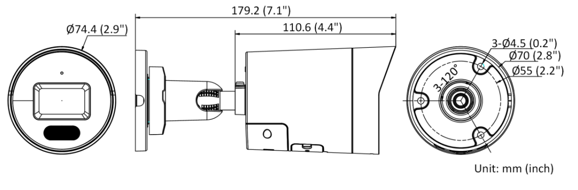 | Camera Dimension | 289.5 mm × Ø105 mm |