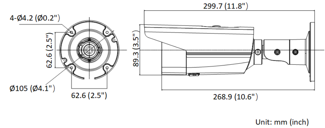 | Camera Dimension | Ø105 mm × 293 mm (Ø4.13' × 11.53') |