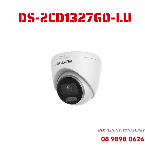 Camera Hikvision ColorVu DS-2CD1327G0-LU với đèn ánh sáng trắng 30m, tích hợp micro và xem bằng tên miền, phần miền miễn phí trọn đời