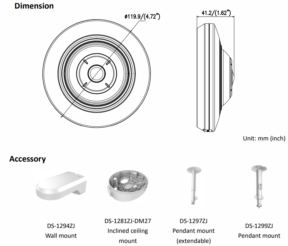 | Display Mode | Support 14 display modes in total (including display modes of different mount types): Fisheye View, 180 Panorama View, 4PTZ, Fisheye + 3PTZ, 360 Panorama View, 360 Panorama + PTZ, 360 Panorama + 3PTZ, 360 Panorama + 6PTZ, 360 Panorama + 8PTZ, 2PTZ, Fisheye + 8PTZ, Panorama View, Panorama + 3PTZ, Panorama + 8PTZ |