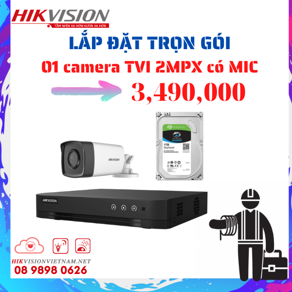 Trọn bộ camera 01 FullHD camera Hikvision có mic