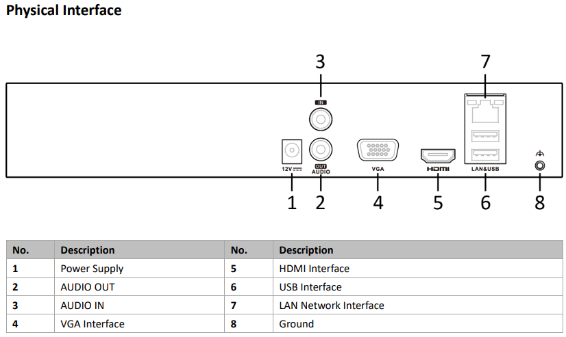| IP Video Input | 4-ch ,Up to 8 MP resolution |