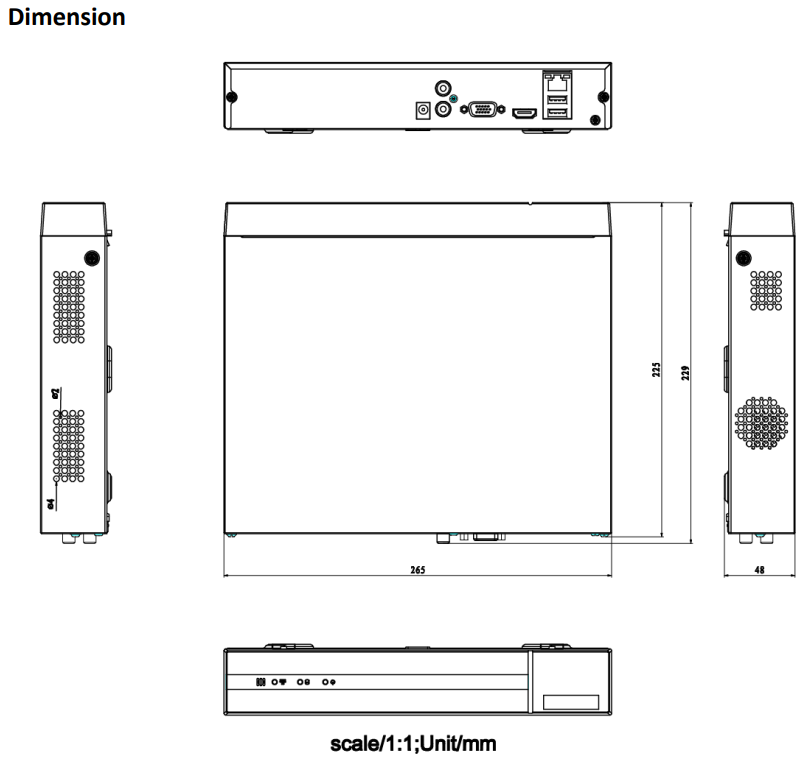 | Dimensions(W × D × H) | 265 × 225 × 48 mm |