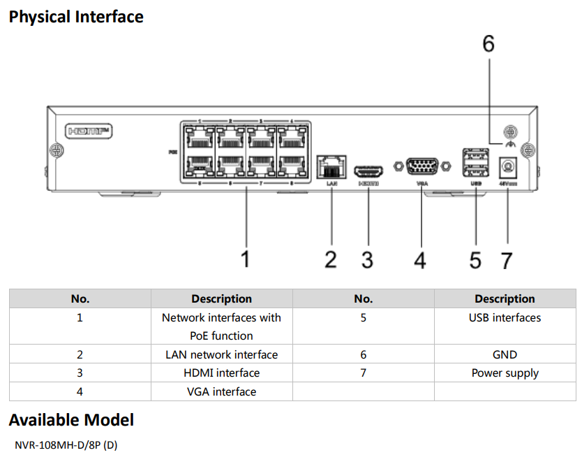 | IP Video Input | 8-ch Up to 4 MP resolution |
