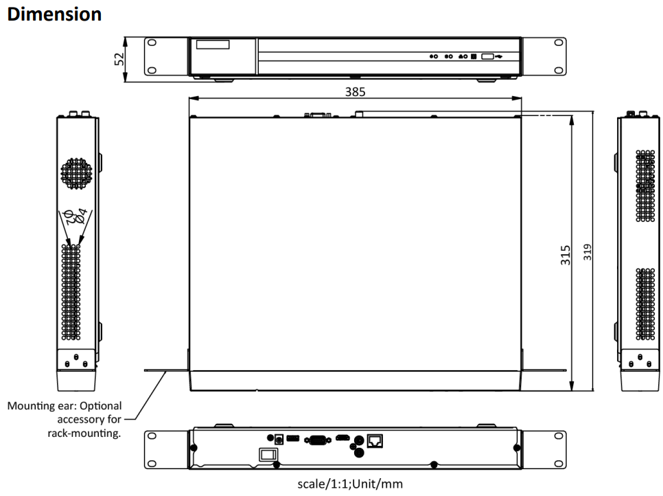 | VGA output resolution | 1-ch, 1920 × 1080p/60Hz, 1280 × 1024/60Hz, 1280 × 720/60Hz, 1024 ×768/60Hz |