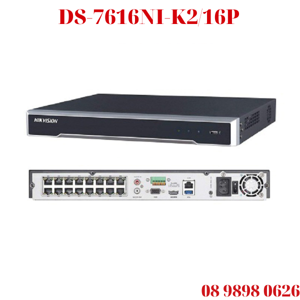 Đầu ghi hình IP HIKVISION DS-7616NI-K2/16P cho chuẩn nén hình ảnh H.265+ giúp tiết kiệm băng thông và dung lượng ổ cứng lên đến 80%, hỗ trợ cổng ra HDMI có độ phân giải ghi hình 4K, hỗ trợ ghi hình 16 camera IP, xem lại, truyền dữ liệu qua mạng, sao lưu, giám sát trên điện thoại.