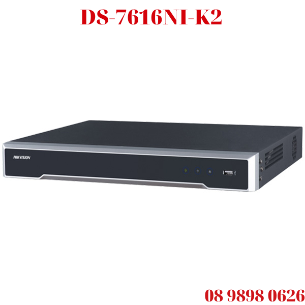 Đầu ghi hình IP HIKVISION DS-7616NI-K2 cho chuẩn nén hình ảnh H.265+ giúp tiết kiệm băng thông và dung lượng ổ cứng lên đến 80%, hỗ trợ cổng ra HDMI có độ phân giải ghi hình 4K, hỗ trợ ghi hình 16 camera IP, xem lại, truyền dữ liệu qua mạng, sao lưu, giám sát trên điện thoại.