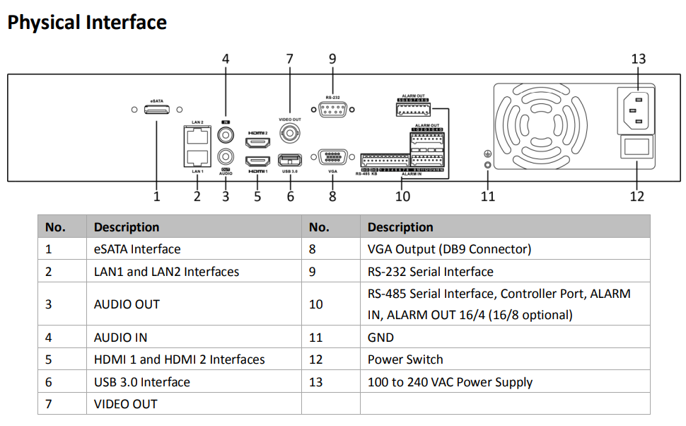 | Alarm in/out | 16 in/ 4 out |