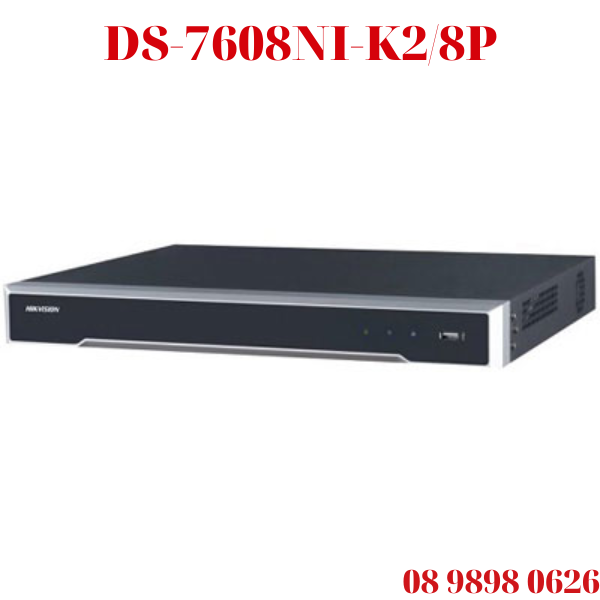 Đầu ghi hình IP HIKVISION DS-7608NI-K2/8P cho chuẩn nén hình ảnh H.265+ giúp tiết kiệm băng thông và dung lượng ổ cứng lên đến 80%, hỗ trợ cổng ra HDMI có độ phân giải ghi hình 4K, hỗ trợ ghi hình 8 camera IP, xem lại, truyền dữ liệu qua mạng, sao lưu, giám sát trên điện thoại.