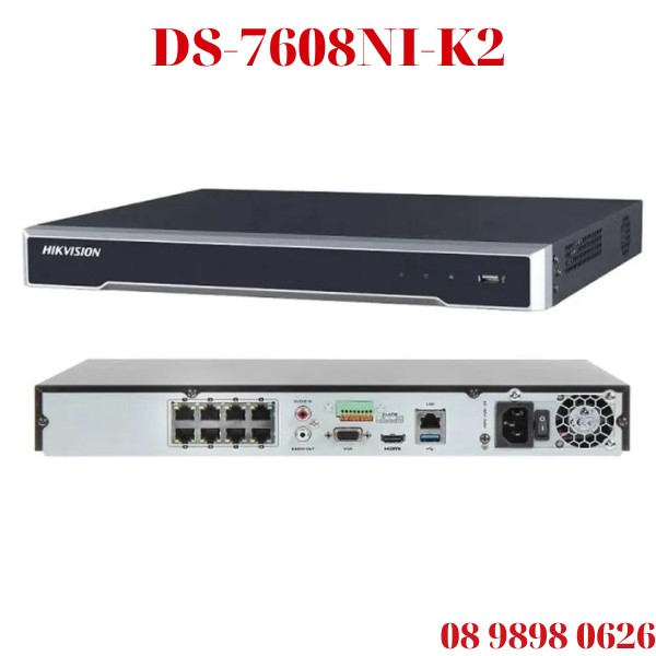 ĐẦU GHI HÌNH IP 8 KÊNH HIKVISION 4k DÒNG 76XX HỖ TRỢ 2 Ổ CỨNG DS-7608NI-K2/8P