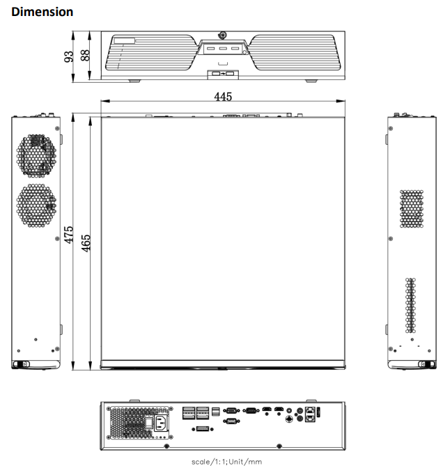 | Dimension (W × D × H) | 445 × 465 × 93 mm |
