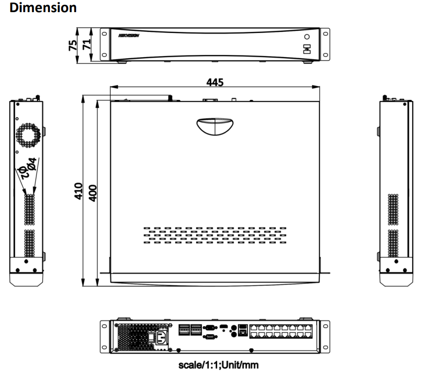 Đầu DS-7616NXI-K4/16P hỗ trợ 16 cổng PoE RJ-45 10/100 Mbps chuẩn IEEE 802.3 af/at. Tổng công suất 200W