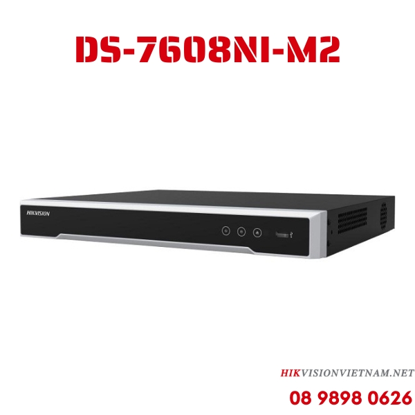 Đầu ghi IP Hikvision DS-7608NI-M2, hỗ trợ 8 kênh, độ phân giải 8K, lưu trữ mạnh mẽ, quản lý dễ dàng, lý tưởng cho hệ thống giám sát an ninh chất lượng cao.