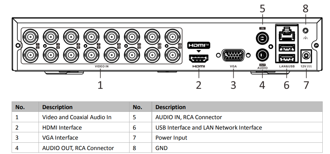 | HDCVI Input | 4 MP@25 fps, 4 MP@30 fps, 1080p@25 fps, 1080p@30 fps, 720p@25 fps, 720p@30fps |