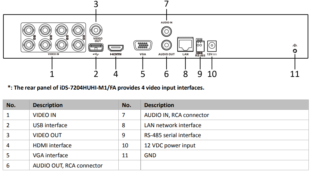 | HDCVI input | 4 MP, 1080p@25 fps, 1080p@30 fps, 720p@25 fps, 720p@30 fps |