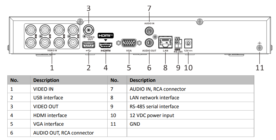 | HDCVI input | 4 MP, 1080p@25 fps, 1080p@30 fps, 720p@25 fps, 720p@30 fps |